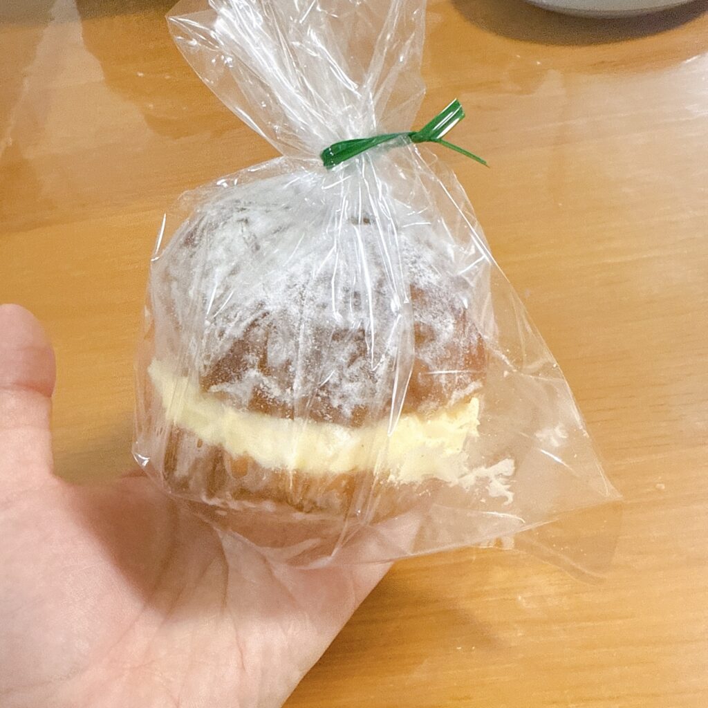 デニッシュパンにクリームを挟んだ感じで、冷蔵でひんやりした甘いクリームとデニッシュ風の生地が冷たくても硬くならずふわふわで柔らかいんです。