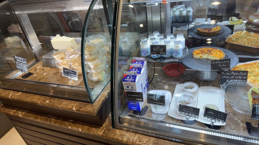 さらに奥には、バターやヨーグルト。キッシュやアッシュパルマンティなど、本格的なお惣菜が並んでいて、パンと一緒に購入すればボリューム満点のランチになります。